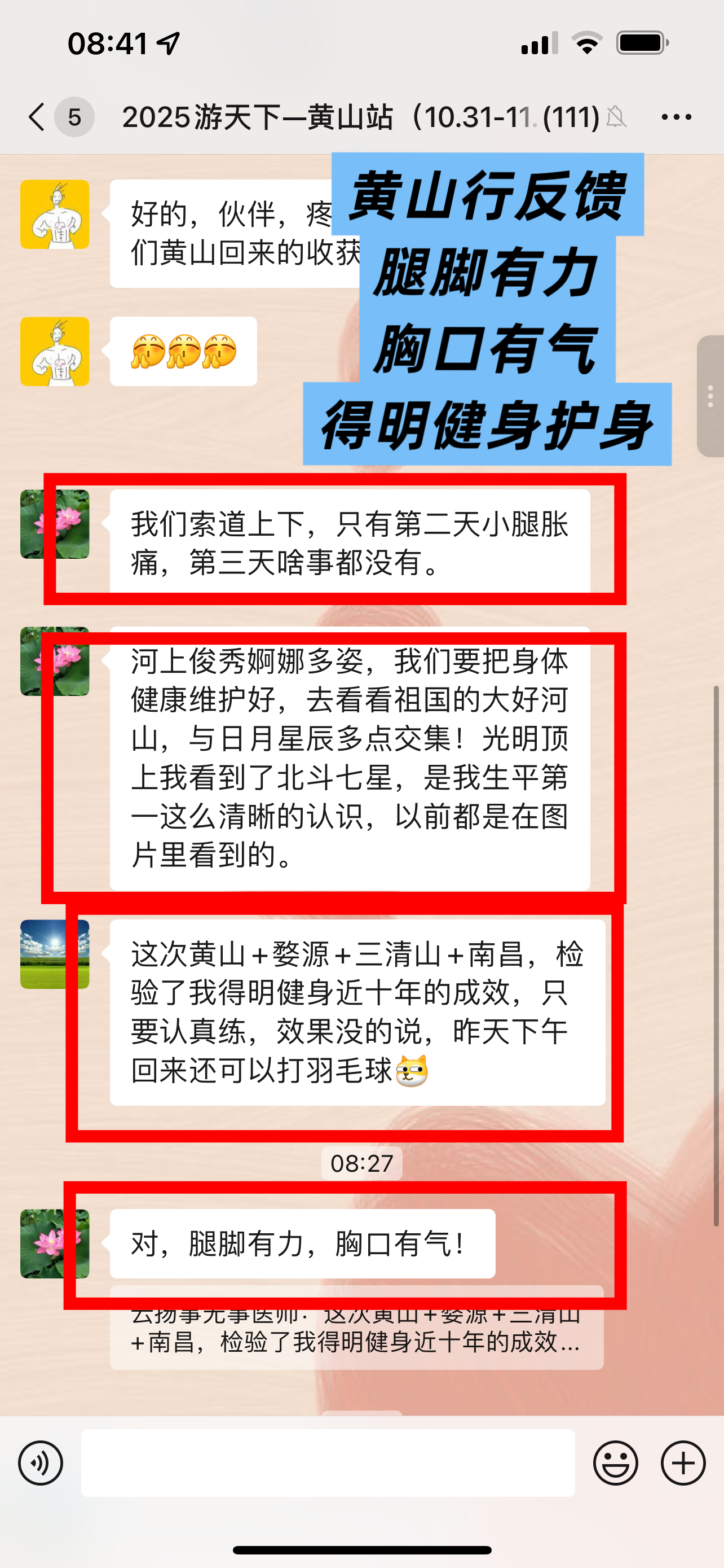 希望大家这次登黄山饱览祖国大好河山,登高壮观我们的山山水水,能够振奋我们的阳气,让我们每个人有大好前程。
