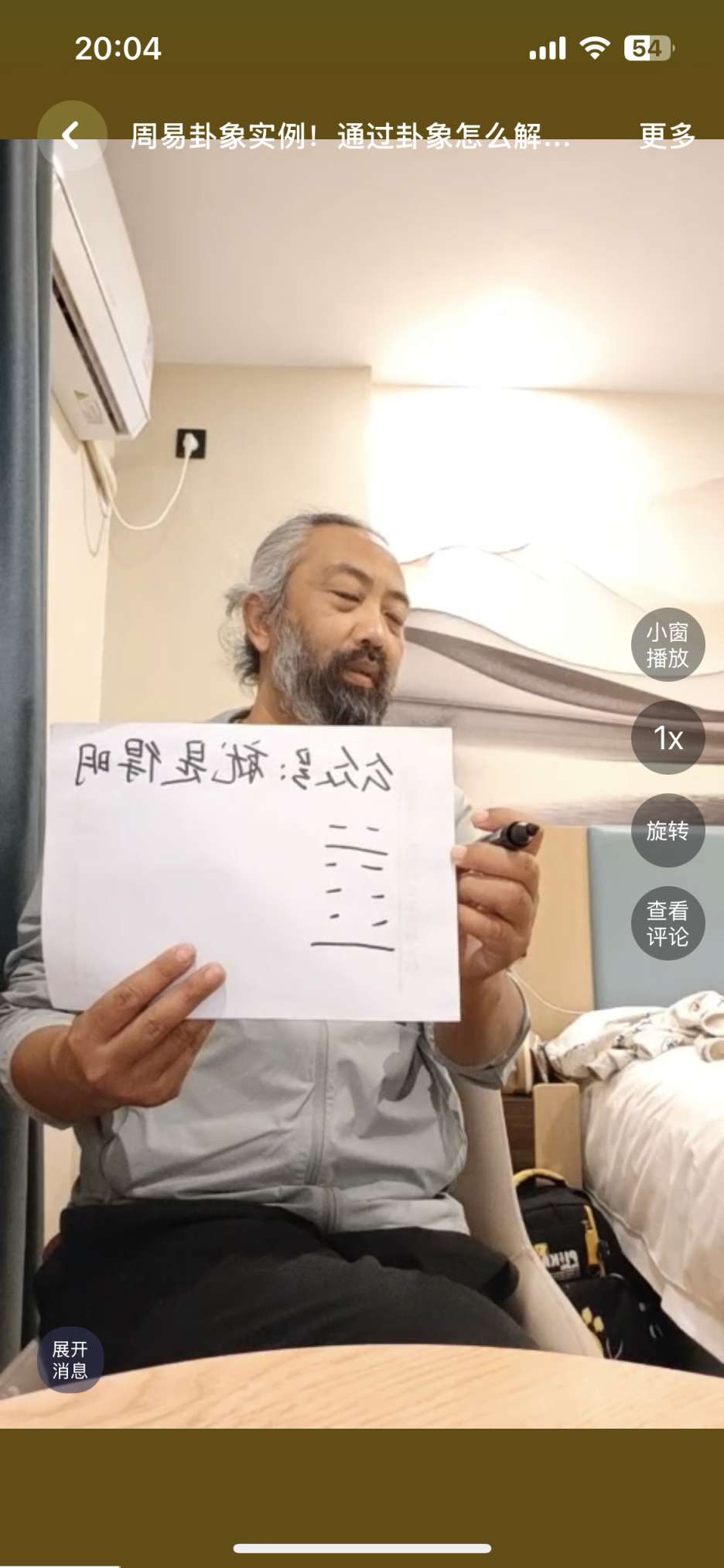 再给你们讲一个。上大学的时候,男生寝室有别的寝室不服过来,踢馆子来了,说我就不信你,你不胡扯淡吗?天天来这么多人,你纯粹是糊弄,我记得他姓葛,满脸横肉往这一坐,您给我看看,我说我有可能看不准,我这样说,但是你不能说周易不行,我不能代表周易,我只能说是我学了这东西。当时给他整了一个,我忘了是什么卦了,只记得他是上边动,那时候我在点儿上,这人在点上说啥啥准,蒙都蒙准了,我不知道你们有没有在点上的时候,就是你全身心投入之后,你就上神儿了,整个人就在那状态里。别看我现在这么厉害,如果让我整卦,我可能还不如那时候。因为我跟他疏离了,批卦象太直觉了,现在基本我不玩这套语言了,这相当于一个象的语言。那时候不是,如痴如狂,那时候我二十岁。我说你小时候肯定摔过,磕脑袋了,上爻动,人的身体那脑袋嘛,他一下就愣这了,“大师!你太厉害了!你怎么知道我是磕脑袋了呢?”那时候我风光无限,每天晚上都有一波人过去,最后连我们那个大学老师,都请我到他家去看。