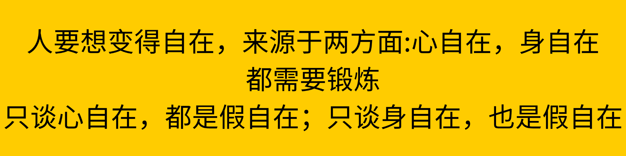 师:我发现人要想变得自在,来源于两方面,心自在,身自在,都需要锻炼。只谈心自在,都是假自在;只谈身自在,也是假自在。