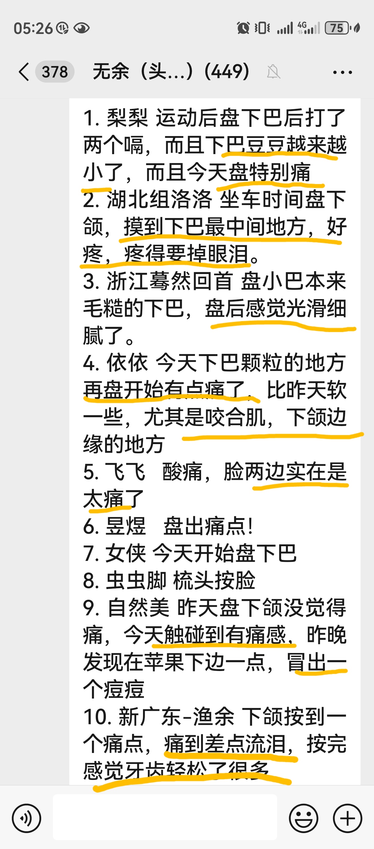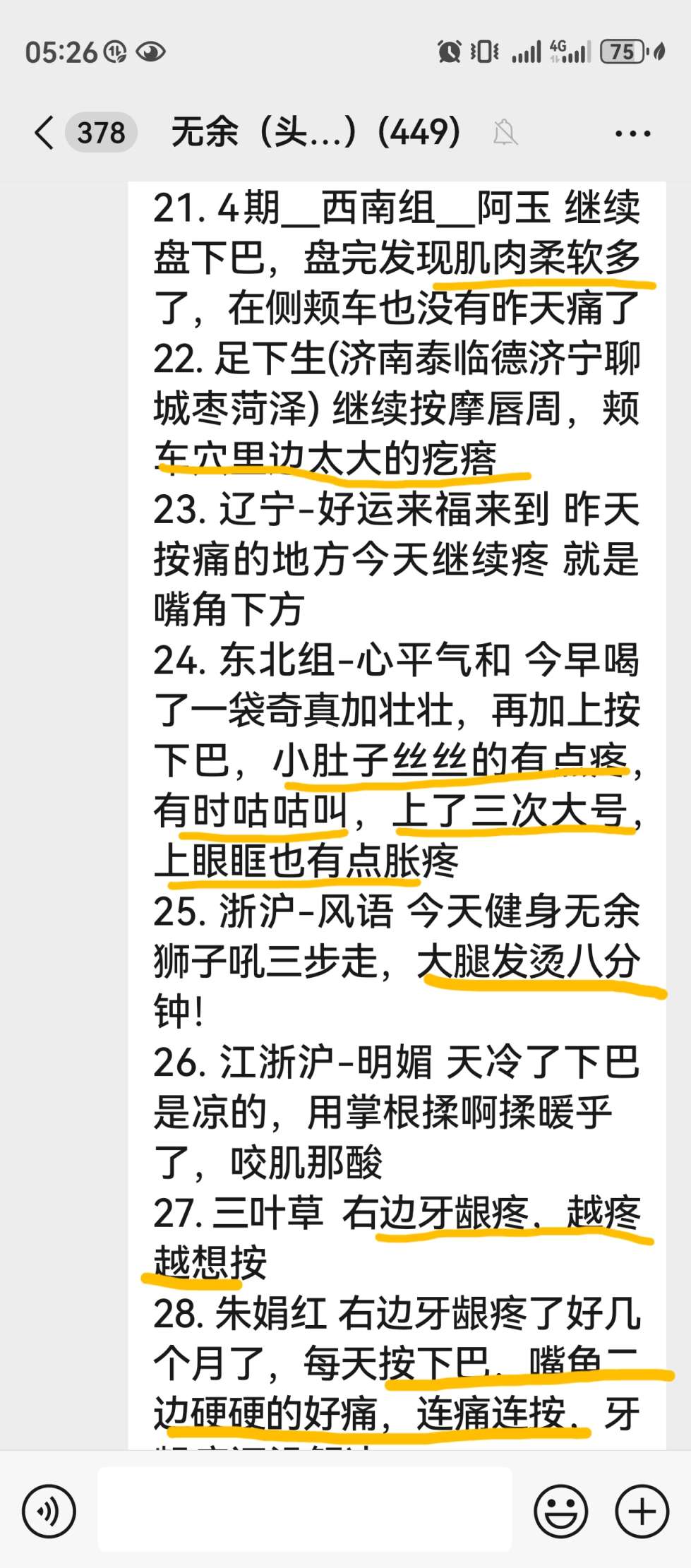 20251126小无余开班热身打卡第一周:无余下颌按摩(颊车穴酸痛,疼,有颗粒感,打嗝不断,盘热乎了,上厕所)