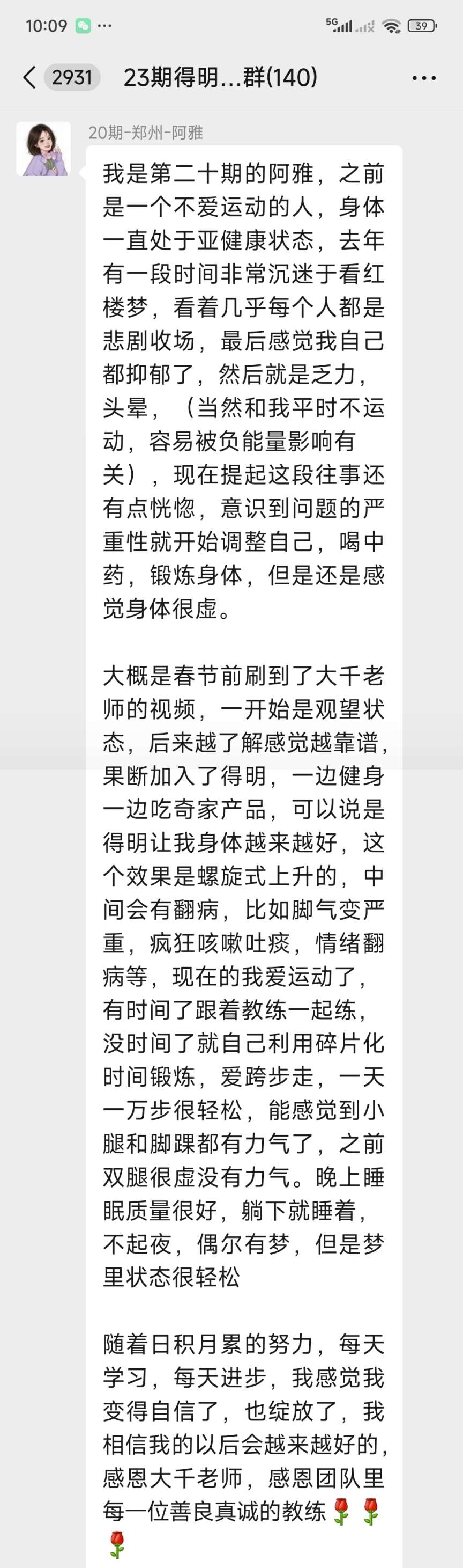 随着日积月累的努力,每天学习,每天进步,我感觉我变得自信了,也绽放了,我相信我的以后会越来越好的,感恩大千老师,感恩团队里每一位善良真诚的教练[玫瑰][玫瑰][玫瑰]