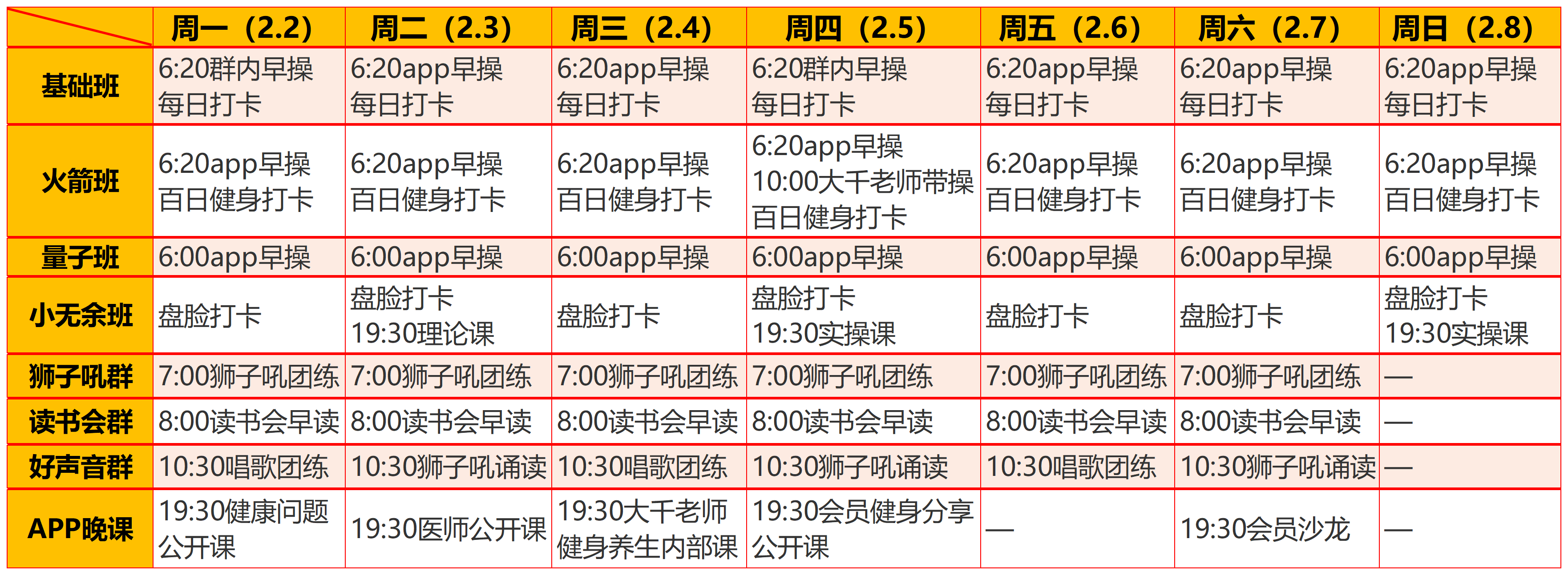 ⏰06:20 基础班/火箭班早操📍基础班群/得明健身APP