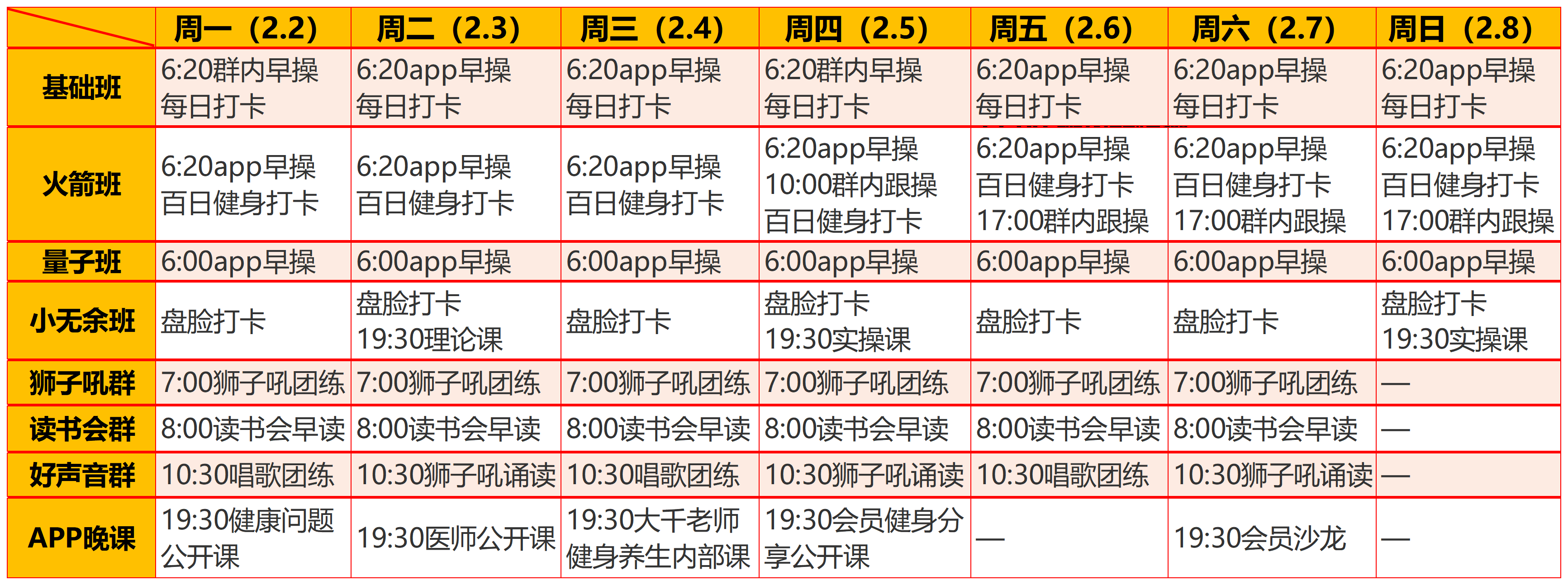 ⏰06:20 基础班/火箭班早操📍得明健身APP