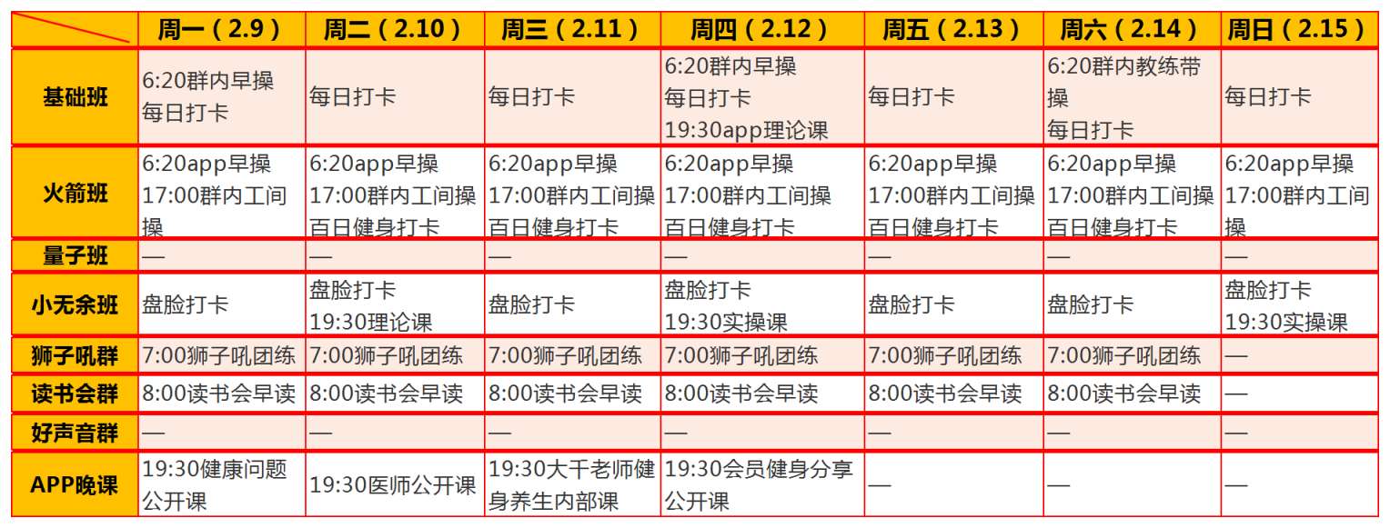 ⏰06:20 基础班/火箭班早操📍得明健身APP