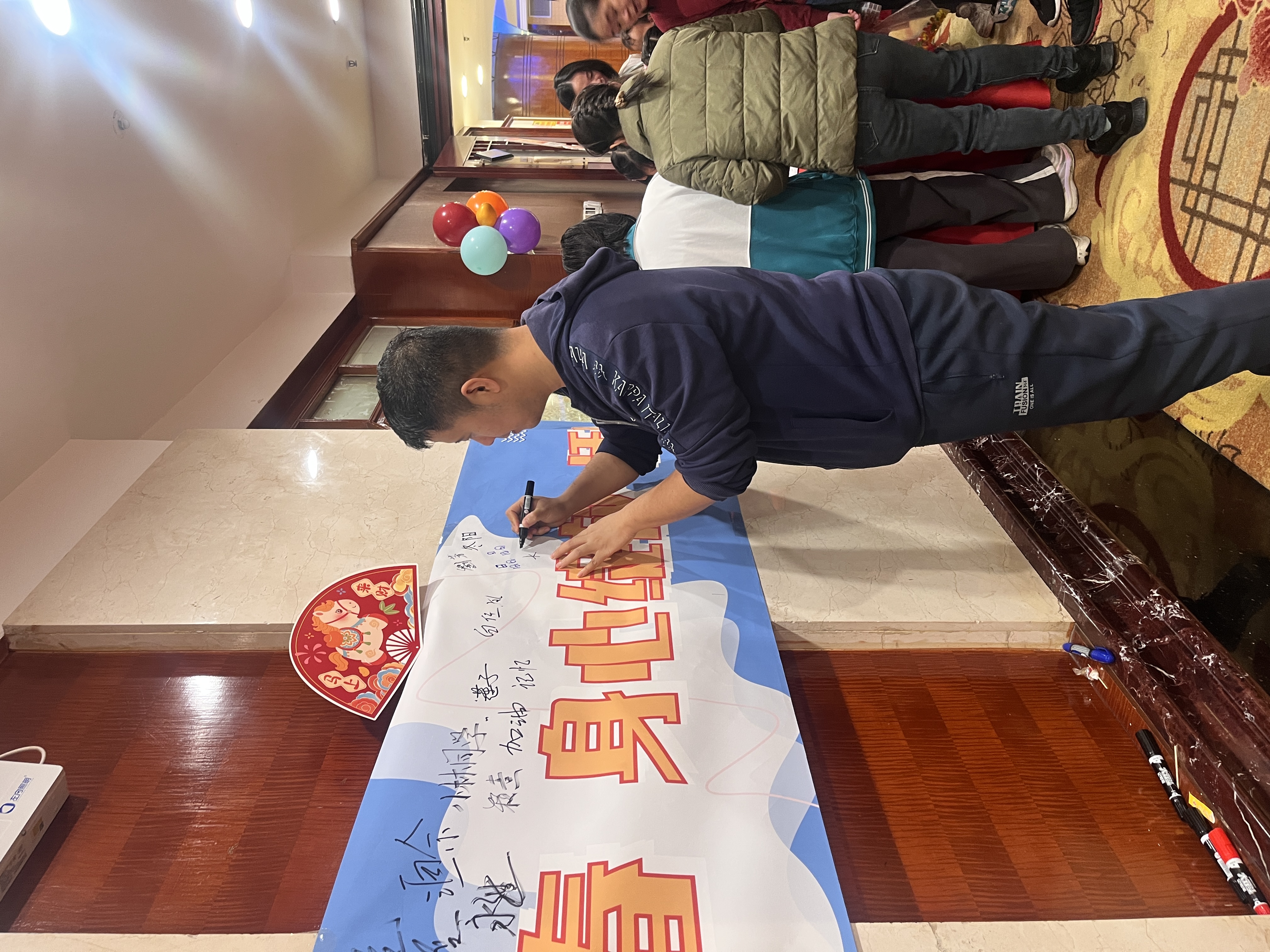 1、 签到形式:学员签到并写下抽奖小便签、写下新年愿望并合影留念、领取小手拍