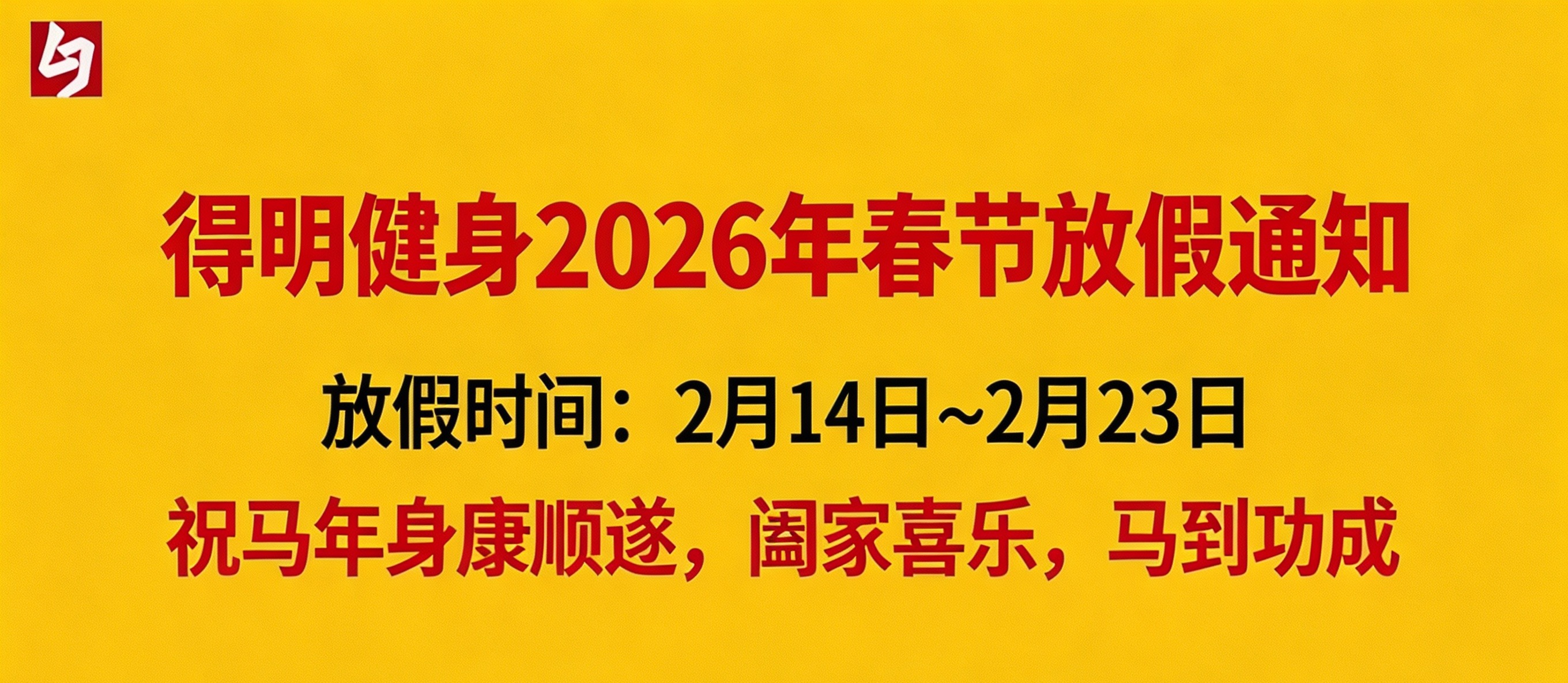 ![]() 原图 下载 各位健身伙伴,2026马年新春快乐! 放假时间:2月14日(腊月二十七)—2月23日(正月初七),2月24日(正月初八)起恢复正常。 放假期间线下活动暂停,线上咨询可联系各组组长,建议保持居家锻炼,延续健康状态~ 祝大家马年身康顺遂,阖家喜乐,马到功成! 得明健身 2026.2.11 查看得明学习引导>>