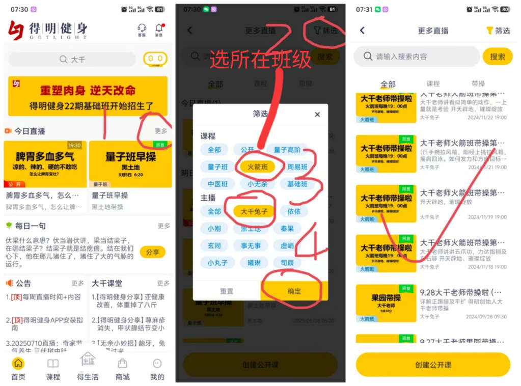 小伙伴们可自行登录APP回看视频跟操学习。更多精彩课程可按以下步骤筛选