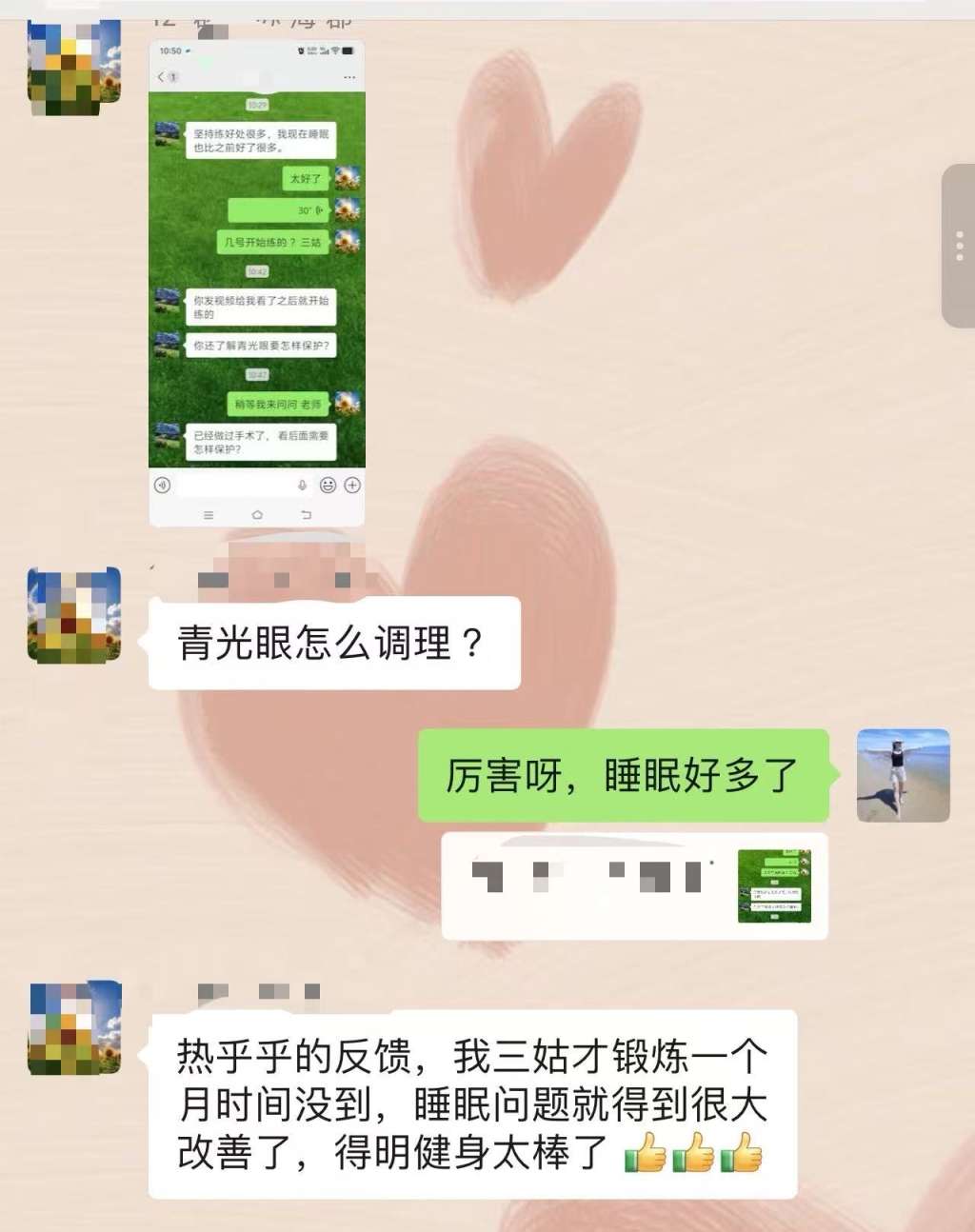 热乎乎的反馈,我三姑才锻炼一个月时间没到,睡眠问题就得到很大改善了,得明健身太棒了