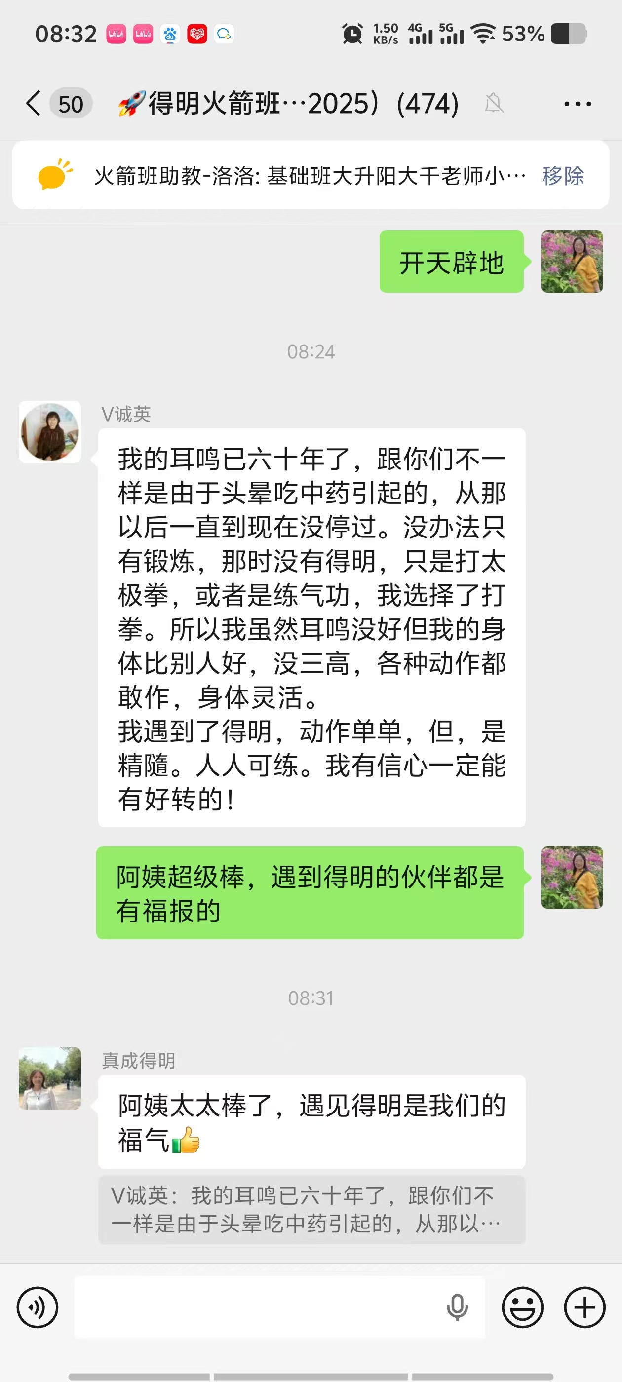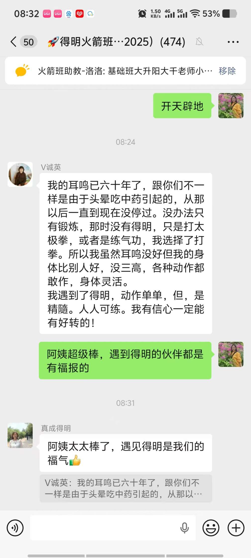 我的耳鸣已六十年了,跟你们不一样是由于头晕吃中药引起的,从那以后一直到现在没停过。没办法只有锻炼, 那时没有得明,只是打太极拳,或者是练气功,我选择了打拳。 所以我虽然耳鸣没好但我的身体比别人好,没三高,各种动作都敢作,身体灵活。 我遇到了得明,动作单单,但是精隨。人人可练。 我有信心一定能有好转的! 查看得明学习引导>>