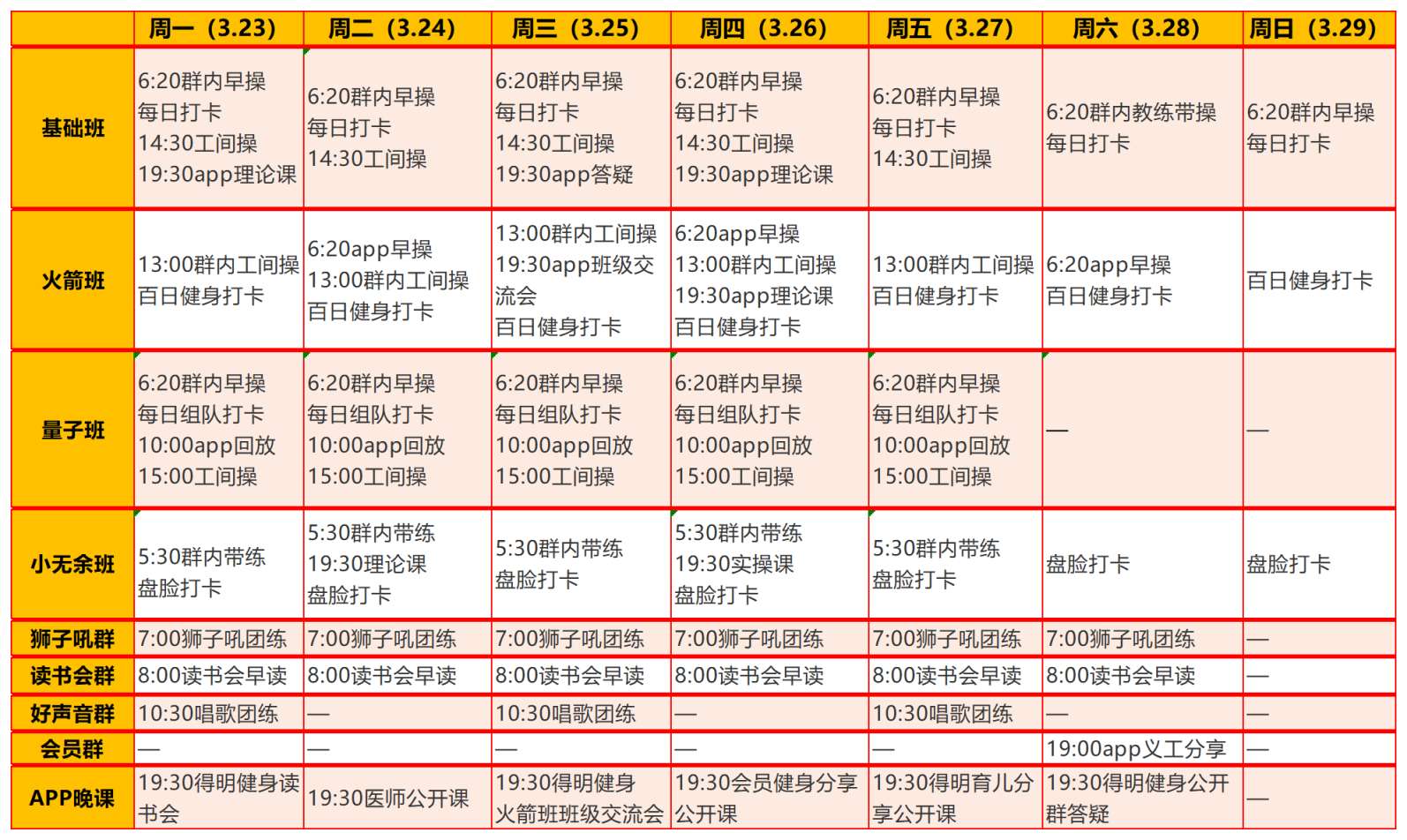 ⏰06:20 基础班/火箭班早操📍基础班群/得明健身APP