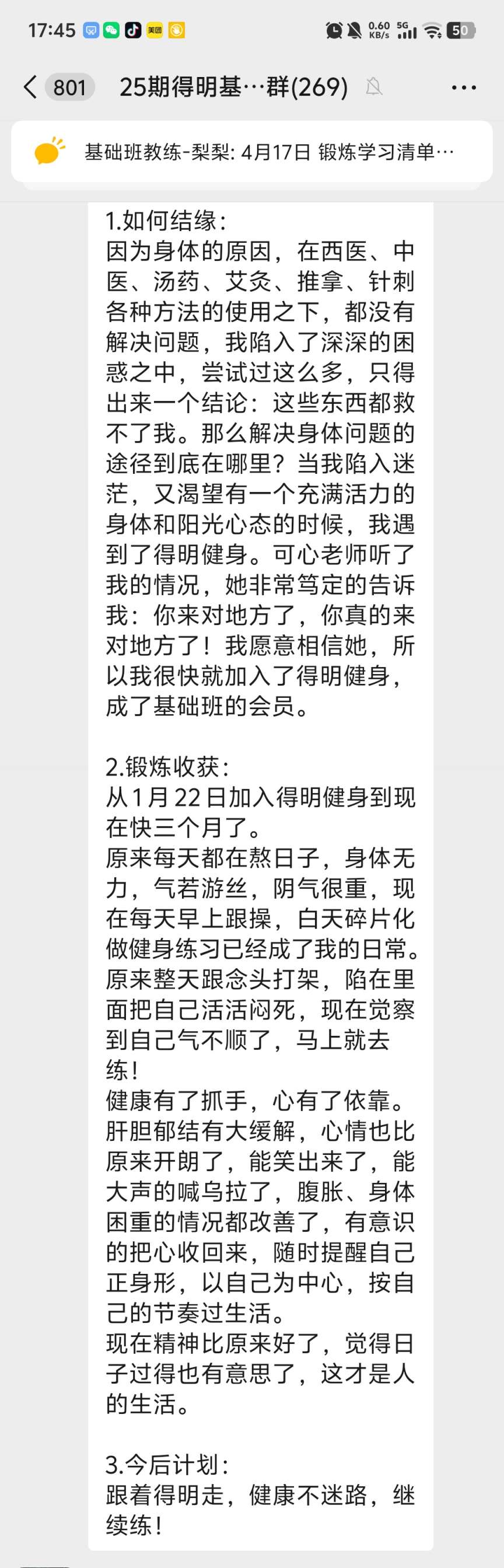 从1月22日加入得明健身到现在快三个月了。