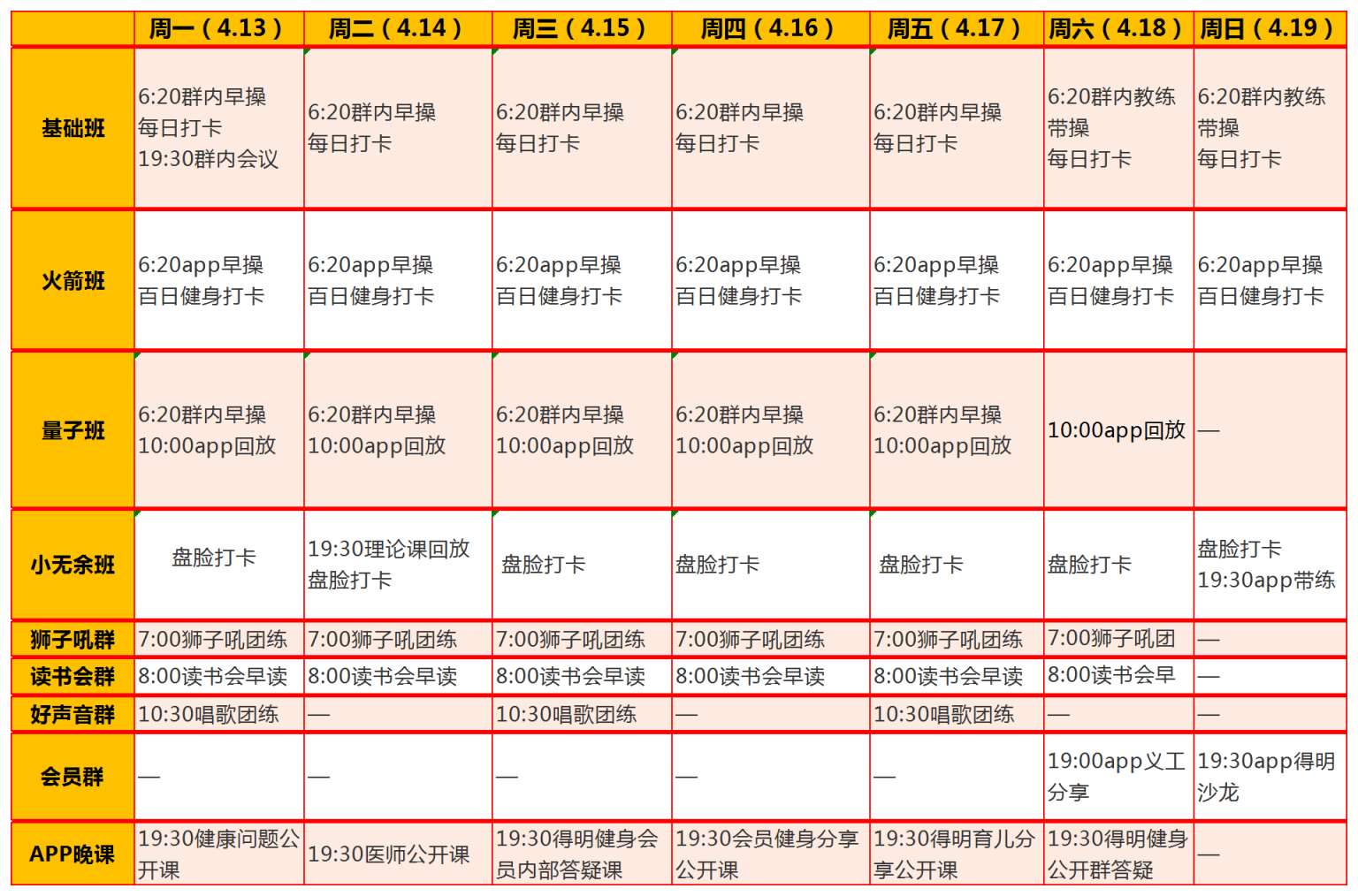 ⏰06:20 基础班/火箭班早操📍基础班群/得明健身APP