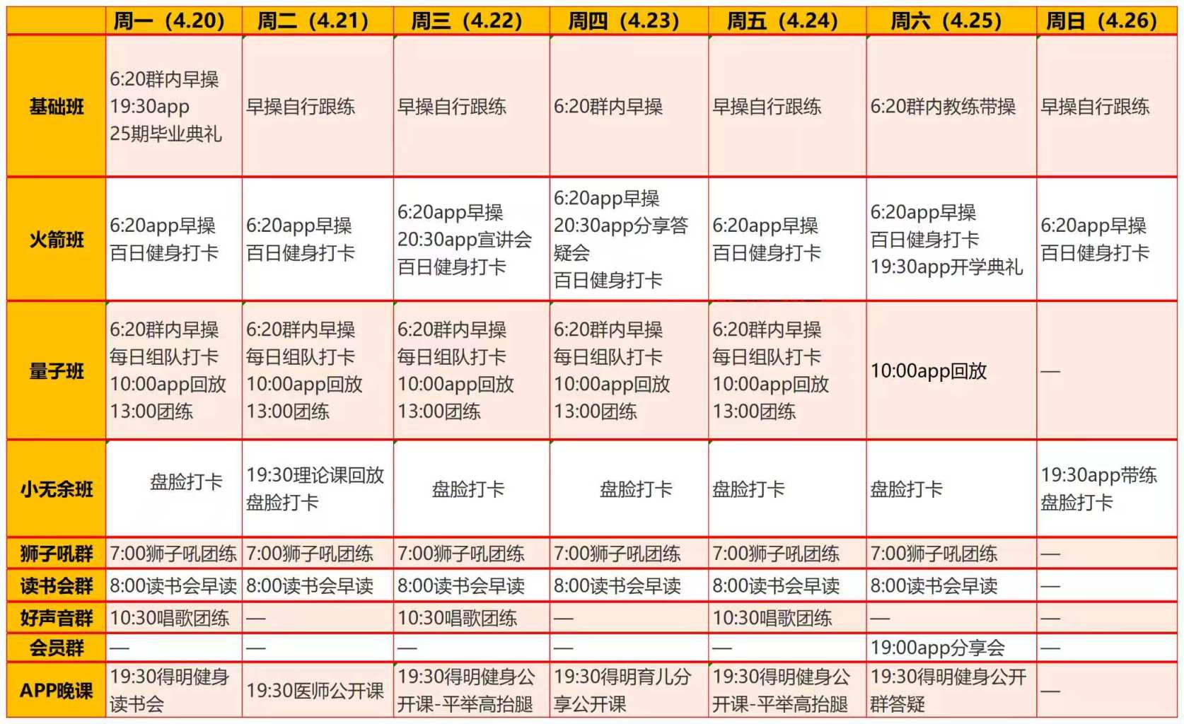 ⏰06:20 基础班/火箭班/量子班早操📍基础班群/得明健身APP/量子班群