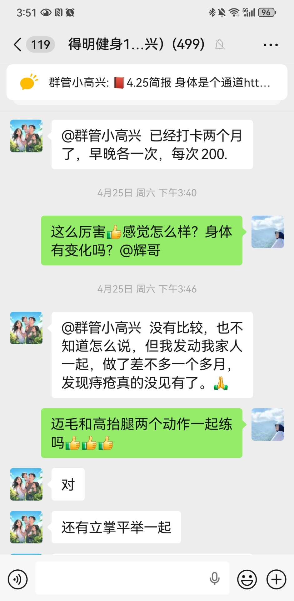 已经打卡两个月高抬腿和迈毛了,早晚各一次,每次200。