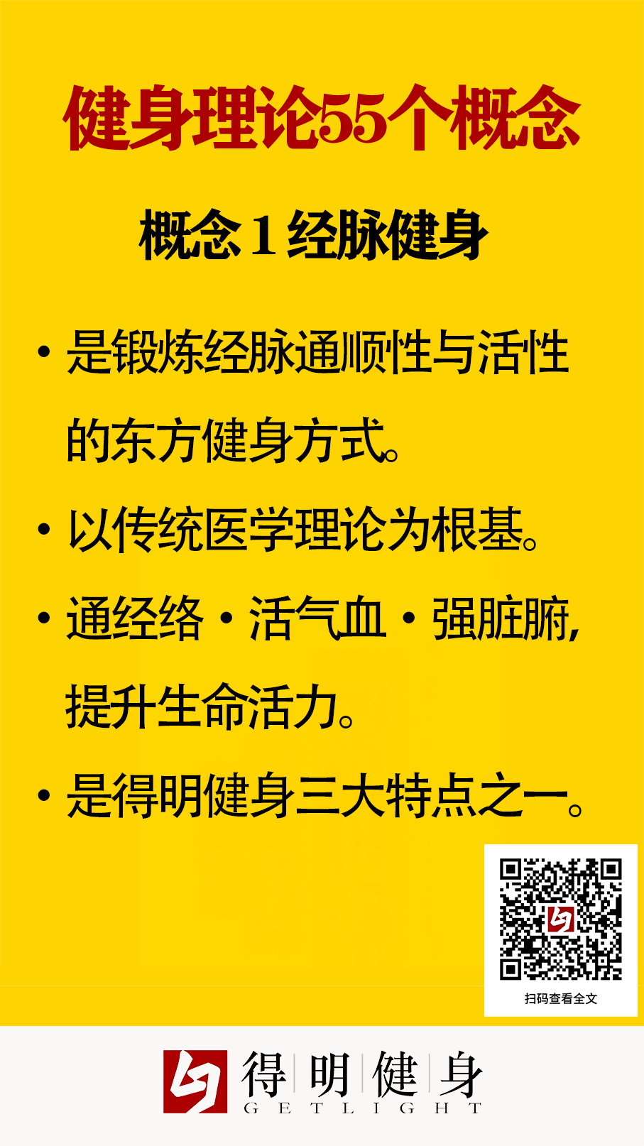 是锻炼经脉通顺性与活性的东方健身方式。以传统医学理论为根基。通经络・活气血・强脏腑,提升生命活力。是得明健身三大特点之一。