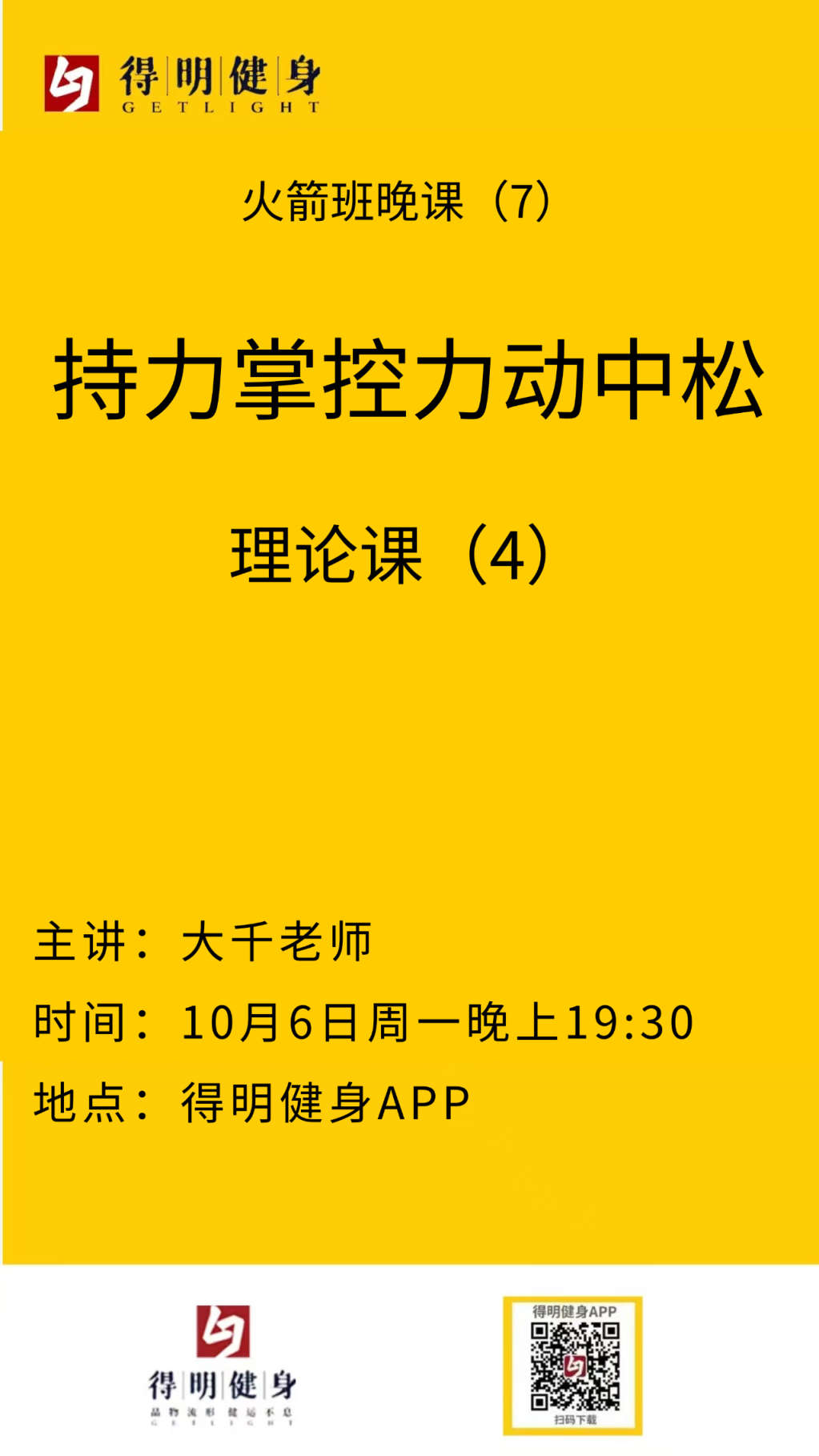 火箭班晚课第七节课:持力-掌控力-与动中松,伙伴们快快跟上来!10月6日周一晚上19:30得明健身APP我吗们不见不散!