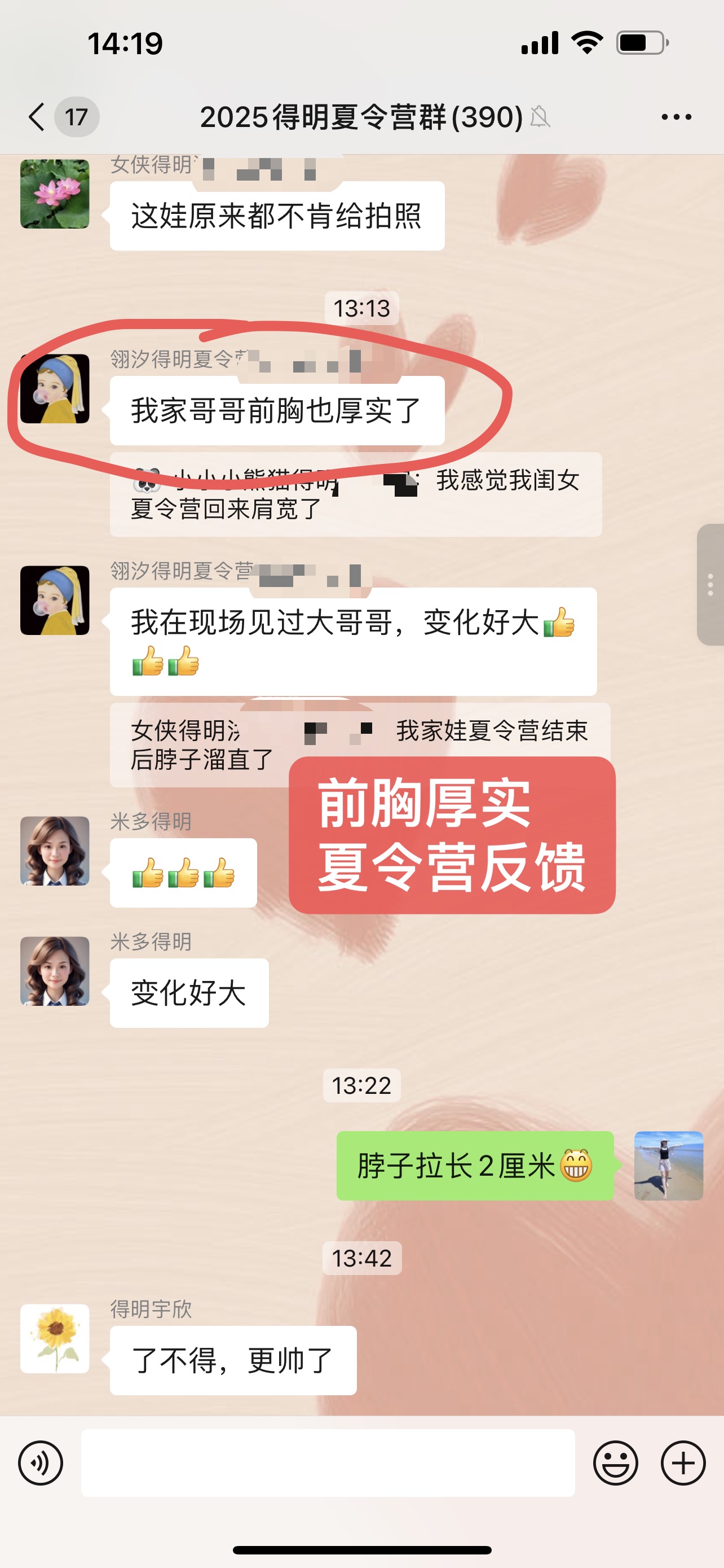 【夏令营反馈】前胸厚实了、脖子拉长2厘米