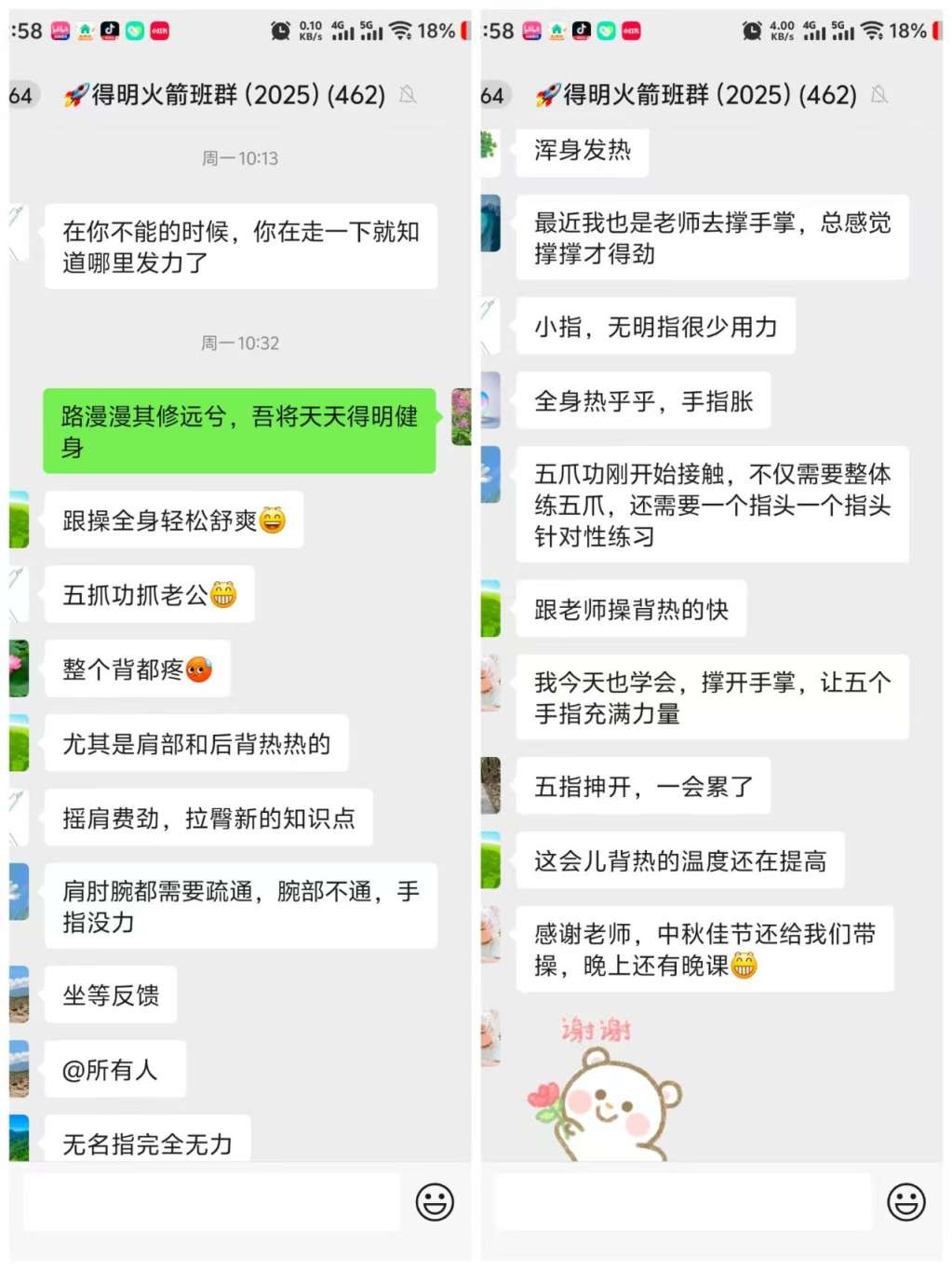 10月11日老师带操火箭班后学员精彩反馈收集:浑身热乎乎舒服、喜欢听老师说、涨知识