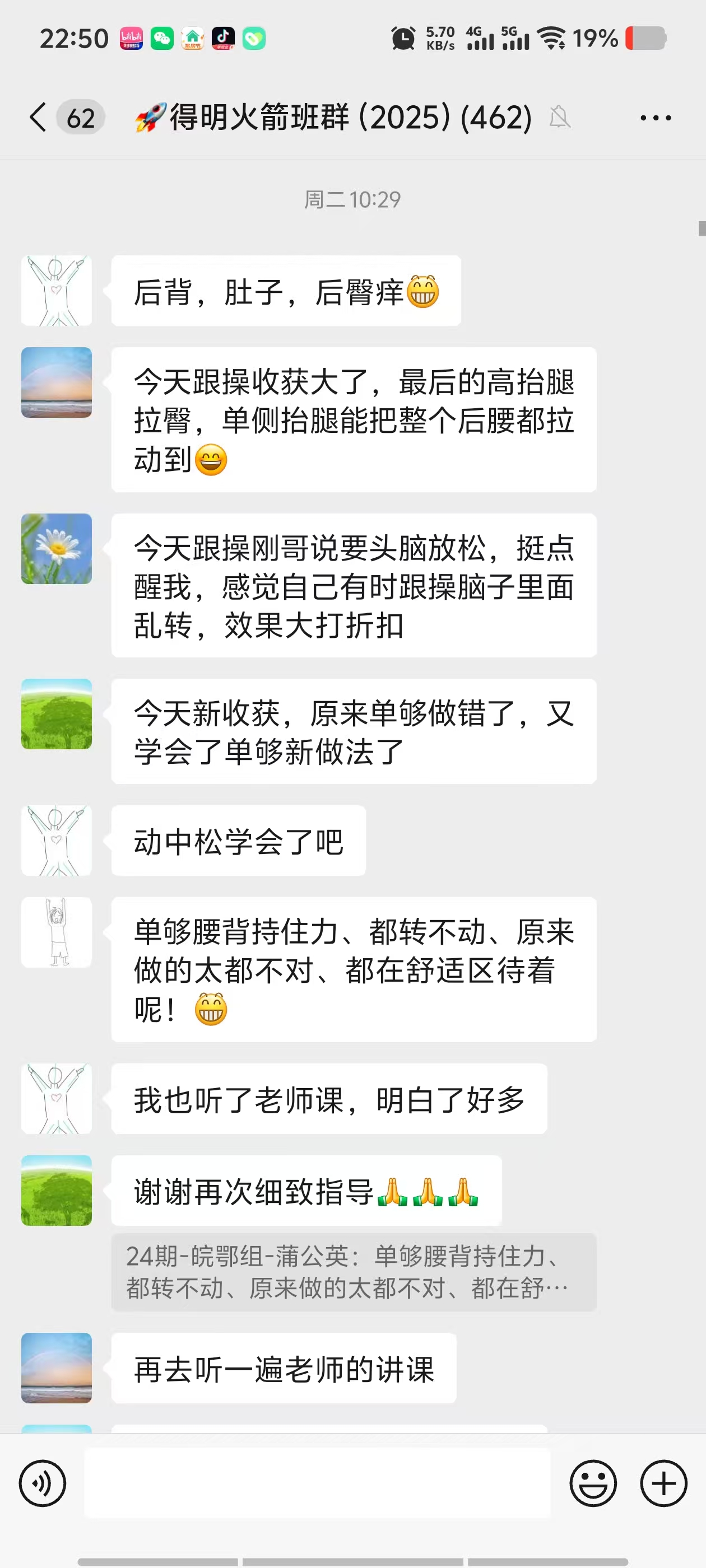 10月7日火箭班刚哥带操后学员精彩反馈:头脑放松、松中动、高抬腿拉臀拉到后腰 https://dmjs.info/m/dv_topic/view.asp?id=9664194&t=1760475103