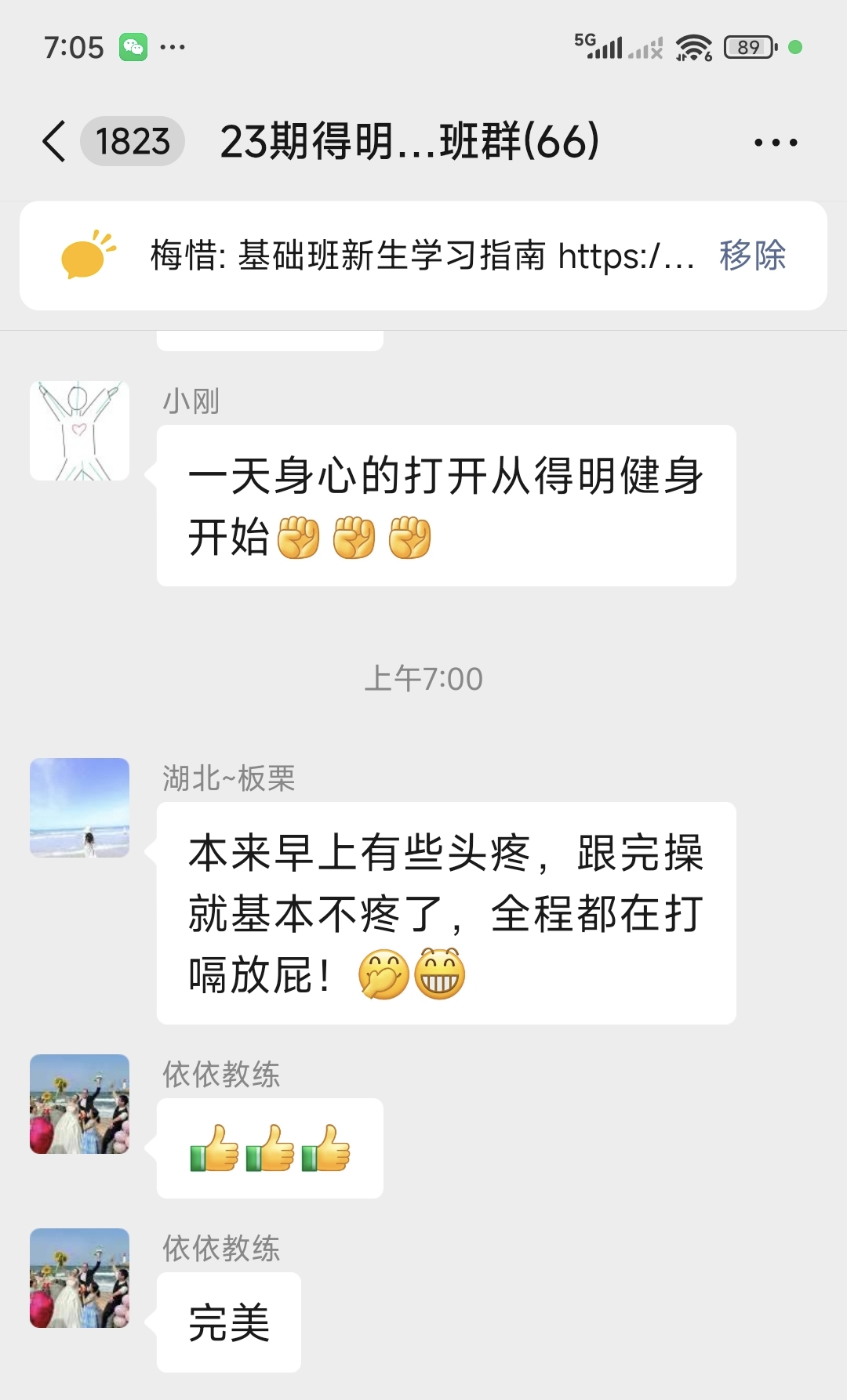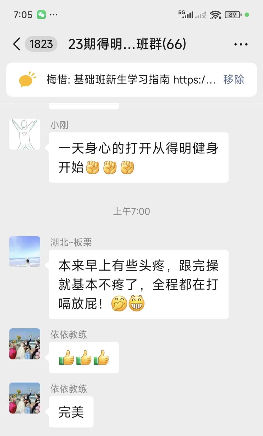 基础班学员分享:早上有些头疼,跟完操不疼了,全程打嗝放屁