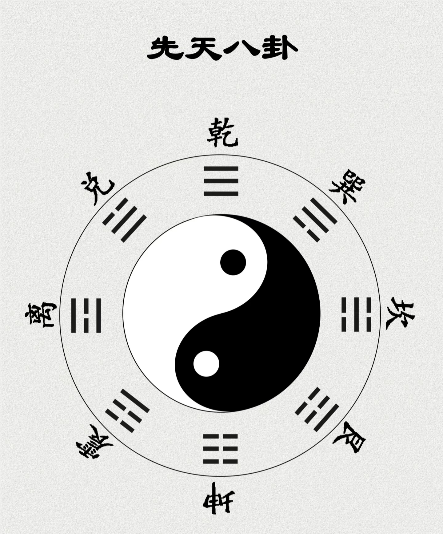4.先天八卦讲究阴阳消长变化,对应事物“成住坏空”(生长壮老已)的规律,如人从出生、壮大、衰老到死亡,石头会风化,星球也有生命周期,符合“天地尚不能久,况于人乎”的自然法则。