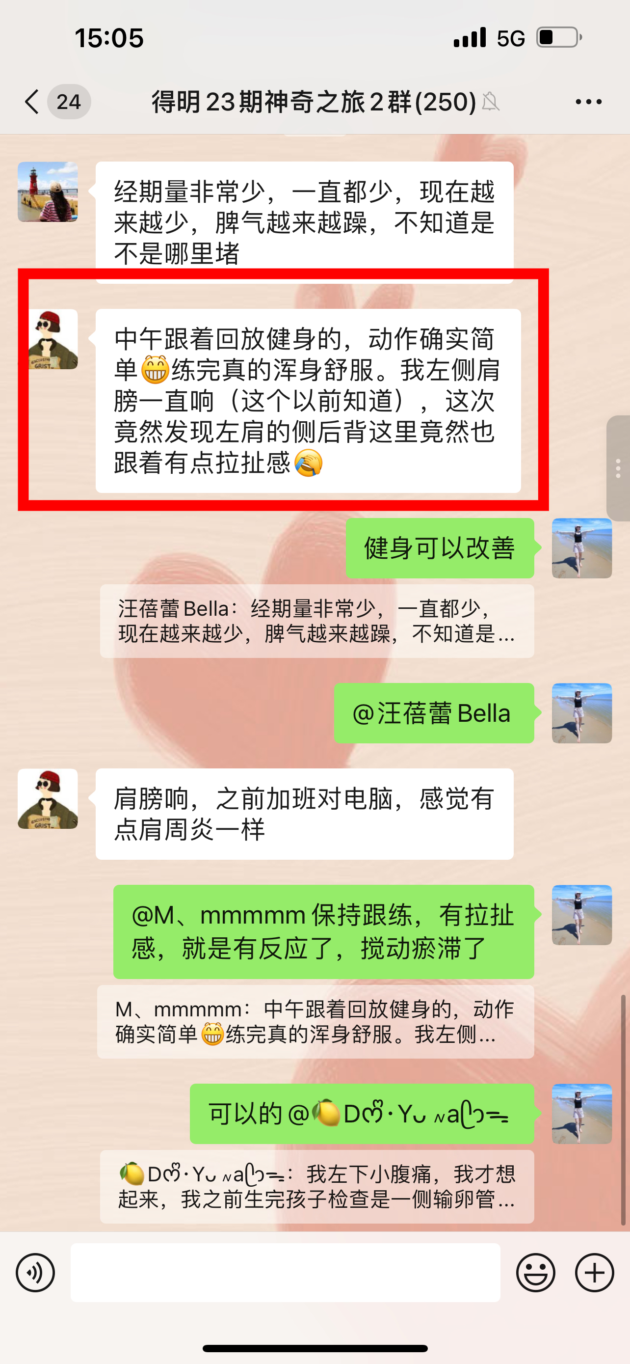 中午跟着回放健身的,动作确实简单[呲牙]练完真的浑身舒服。我左侧肩膀一直响(这个以前知道),这次竟然发现左肩的侧后背这里竟然也跟着有点拉扯感[捂脸]