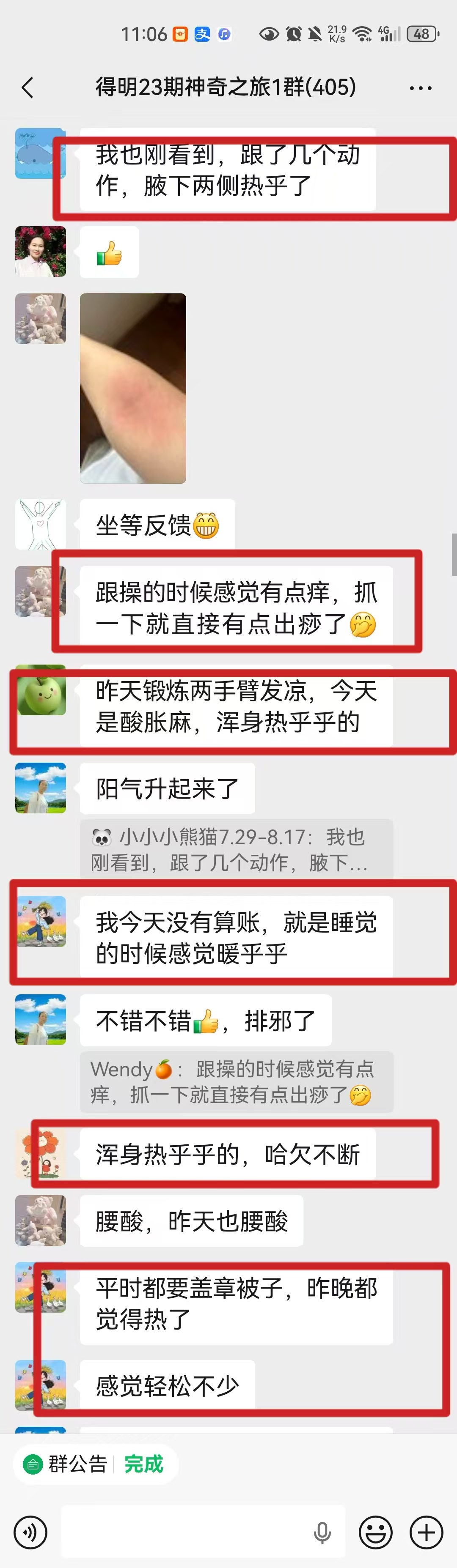 跟了几个动作,腋下两侧热乎,有点痒,抓一下出痧了,浑身热乎乎